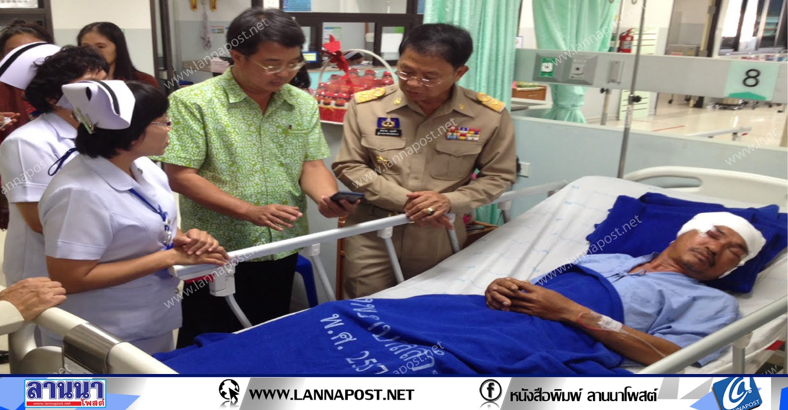 ได้เข้าเยี่ยมอาการ นายสว่าน ผางทุม อายุ 52 ปี ที่โรงพยาบาลลำปาง ซึ่งล่าสุดอาการปลอดภัยดีแล้ว