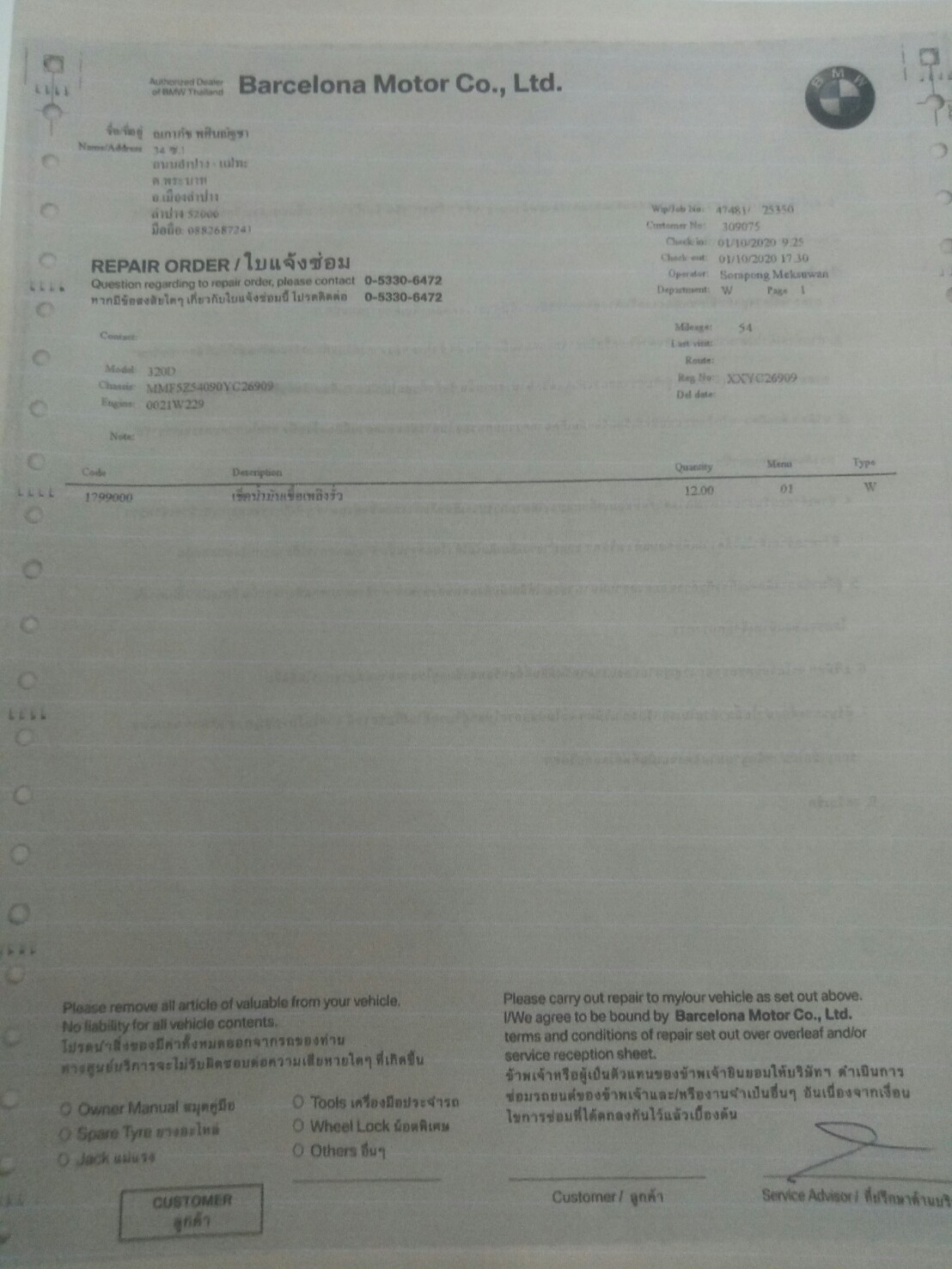 BMW ป้ายแดง และนำรถออกจากโชว์รูมเมื่อวันที่ 30 ก.ย. 63 ที่ผ่านมา แต่ขับรถได้ประมาณ 20 กิโลเมตรรถได้เกิดชำรุดเสียหายถังน้ำมันรั่วไม่สามารถขับต่อไปได้ จากนั้นได้แจ้งบริษัทขอทำการเปลี่ยนรถคันใหม่