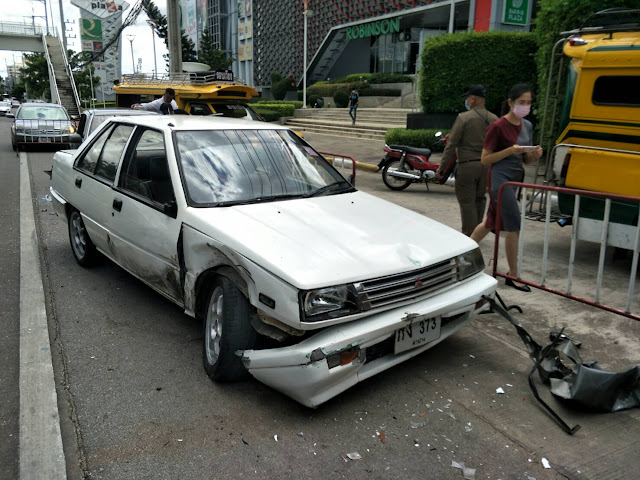 คันที่ 2 เป็นรถยนต์เก๋งมิซซูบิซิ สีขาว หมายเลขทะเบียน กง 373 ลำปาง สภาพล้อหน้าขวาถูกชนพังยับเยินเช่นกัน และคันที่ 3 เป็นรถยนต์ 2
