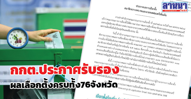 ผอ.กกต.ประจำจังหวัดแจ้งประกาศผลการเลือกตั้งให้ผู้สมัครได้รับทราบต่อไป