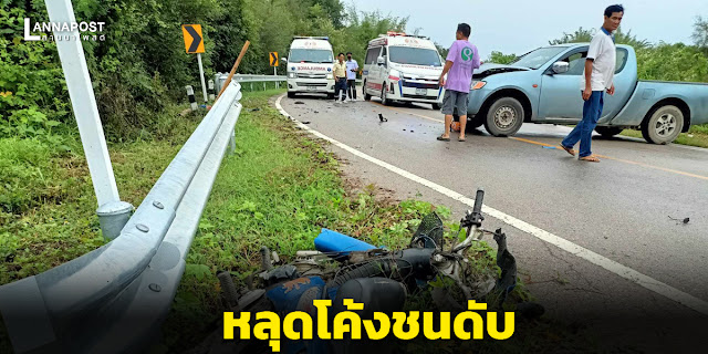 โดยมีร่างชายคนขับขี่รถจักรยานยนต์กระเด็นไปประมาณ 10 เมตร