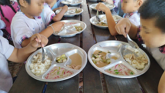 วันนั้นป้าก็เป็นคนตักอาหารเอง เด็กอนุบาลจะได้น้อยกว่าเด็กประถม บางคนชอบก็ทานหมด