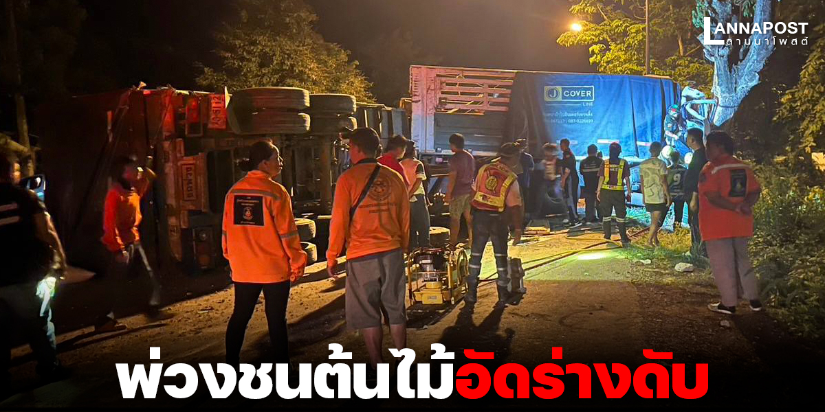วันที่ 28มิถุนายน 2567 เวลา 20.50 น.เจ้าหน้าที่ตำรวจ สภ.งาว ได้รับแจ้งว่าเกิดอุบัติเหตุรถบรรทุกพ่วง 18 ล้อ เสียหลักชนต้นไม้ข้างทาง บริเวณ กม.795 ถ.พหลโยธิน ก่อนถึงสะพานบ้านปันเหนือ ต.ปงเตา อ.งาว ขาล่องจากพะเยาเข้าอำเภองาว เบื้องต้นมีผู้เสียชีวิตติดภายในรถ จึงรีบประสานร้อยเวรสอบสวน สภ.งาว แพทย์เวร รพ.งาว และเจ้าหน้าที่ สมาคมกู้ภัยอำเภองาว ร่วมให้การช่วยเหลือ