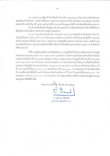 ห้ามมิให้บุคคลหนึ่งบุคคลใดเผาป่าหรือเข้าไปกระทำการใดๆในเขตป่าในพื้นที่